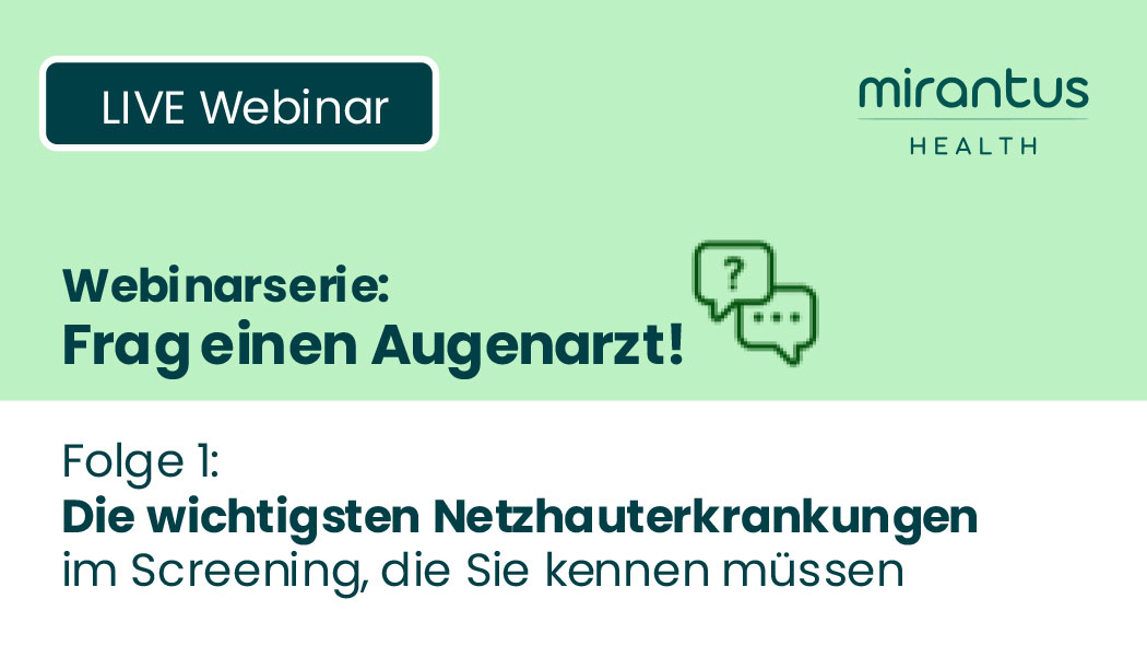Das Berliner Gesundheitsunternehmen Mirantus Health bietet Ihnen als Augenoptiker eine qualitativ hochwertige Expertenlösung für Augen-Check-Ups in Ihrem Laden. Dazu zählt die intuitive Software MIRA mit nahtlosen Geräteschnittstellen zu Ihrer Funduskamera, eine gründliche Auswertung jedes Falls durch einen Augenarzt innerhalb 48 Stunden, ein bundesweites Augenärzte-Netzwerk mit über 400 Partner-Ärzten für eine Weiterversorgungsmöglichkeit im Bedarfsfall und eine Datenverarbeitung gemäß DSGVO und Nutzung sicherer Verschlüsselungsstandards (z. B. TLS 1.3, AES-256).