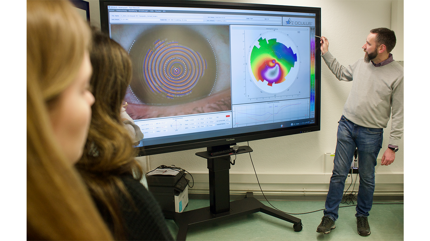 In Anlehnung an das ECOO-Diplom bereitet Sie dieser Kurs auf die Prüfung zum Optometrist (HWK) vor. Dabei werden neben vertiefenden Inhalten in den Bereichen Anatomie, Physiologie und Pathologie des Auges auch Grundlagen des gesamten menschlichen Körpers sowie der Pharmakologie vermittelt. Im Praxisteil des Kurses werden die Durchführung und Auswertung vielfältiger Screeningteste sowie die Bedienung diverser Geräte zur Untersuchung des vorderen und hinteren Augenabschnitts erlernt.